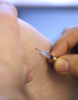 Desinfektion af huden før injektion udføres for at reducere risikoen for indføring af bakterier i vævet i underhud og muskel.